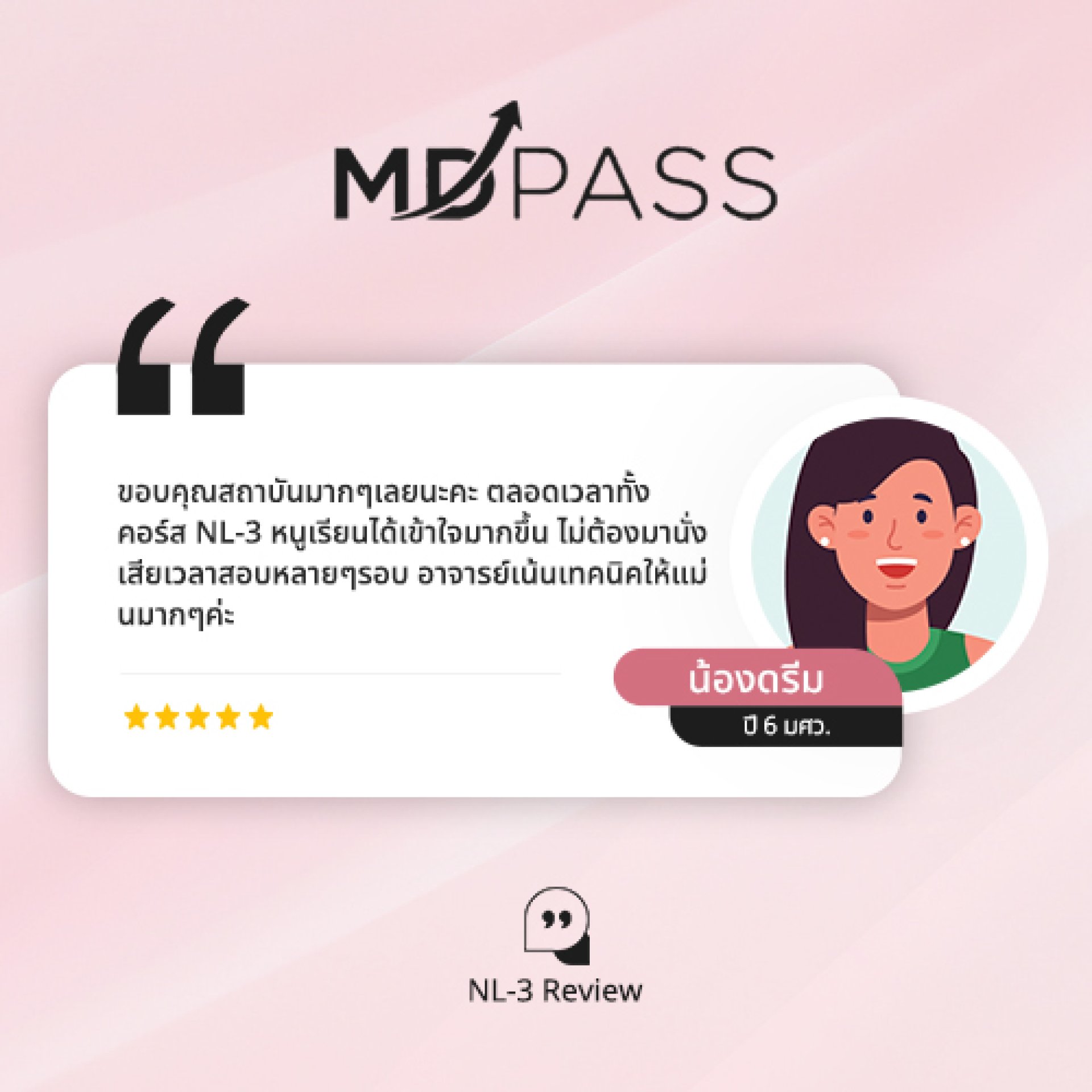 หนูเป็นคนที่อ่านเองแล้วไม่ค่อยมั่นใจ โดยเฉพาะ OSCE เพราะไม่มีโอกาสฝึกจริง คอร์ส NL-3 Premium ช่วยหนูไว้เยอะมากกกกก อาจารย์สอนแบบเป็นกันเอง แต่เป๊ะทุกจุดที่ออกสอบจริง ทั้งแนวคิด วิธีประเมินคนไข้ การสื่อสารในสถานการณ์ต่าง ๆ และเทคนิคสำคัญที่ทำให้ไม่หลุด step